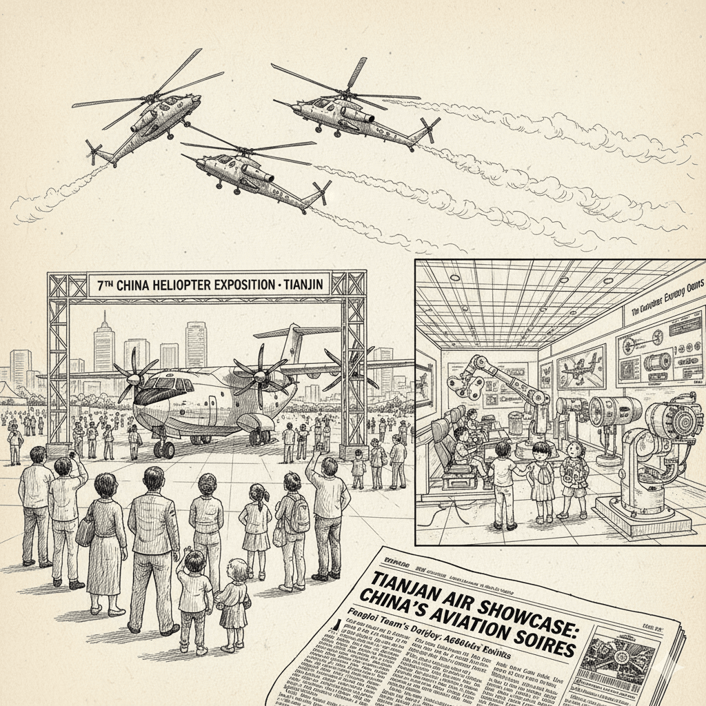 Summary The 7th China Helicopter Exposition officially opened in Tianjin on Saturday, featuring live aerobatic shows by the PLA’s Fenglei